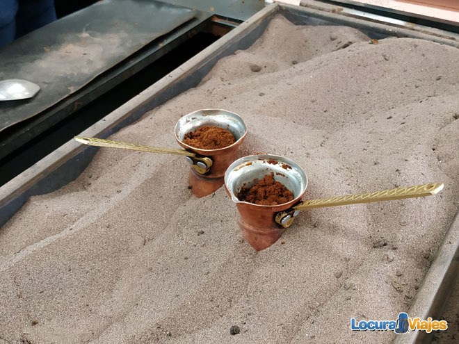 En la cafetería podréis disfrutar del café tradicional griego, que se hace sobre una plancha de tierra caliente, se va moviendo la misma y realmente es un café con un sabor terroso. Podréis elegir qué nivel de dulzor queréis para el café, sin que tengáis que añadir azúcares después